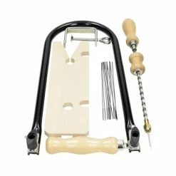 Contenu1 scie à chantourner avec système de serrage, 1 planche en bois, 1 frette, 1 vrille avec foret