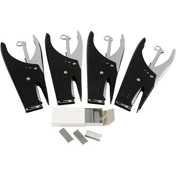 Contient4 agrafeuses et 10 boîtes d’agrafes de 1000 pièces chacune.