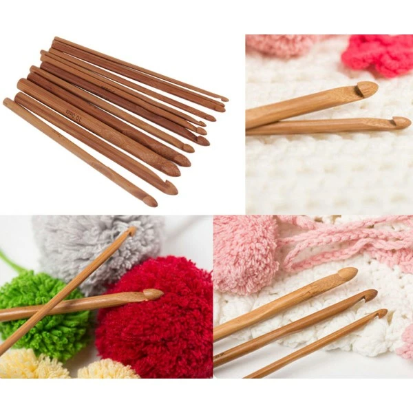 Description de Bambou naturel 12 Tailles de Jeu en Bois, Poignée Crochet Crochets 3mm-10mm à Tricoter Outil de Tail