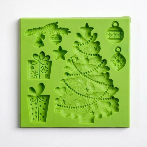 Description de Moule Silicone « Arbre de Noël cadeaux, fleur Cabochon, » 8 × 8 cm, de Noël, savon, Uv résine, polymèr