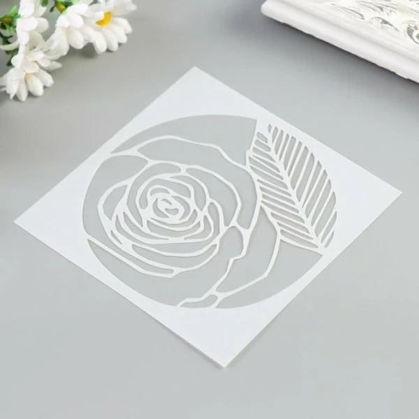 Description de Pochoir en plastique « Rose avec feuille » 13×13 cm, Police, fichier coupé, Artisanat, Décoration Mura