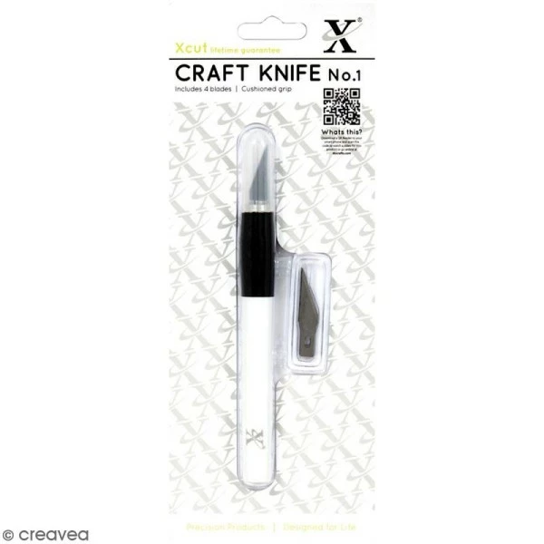 Ce cutter Craft Knife Xcut (aussi appelé cutter de précision) mesure 14,5 cm de longueur. Il vous permettra de découper proprement toutes sortes de papiers et supports cartonnés. Il est notamment parfait pour le scrapbooking et toutes les activités manuelles. Au total, 5 lames sont inclues dans ce kit.