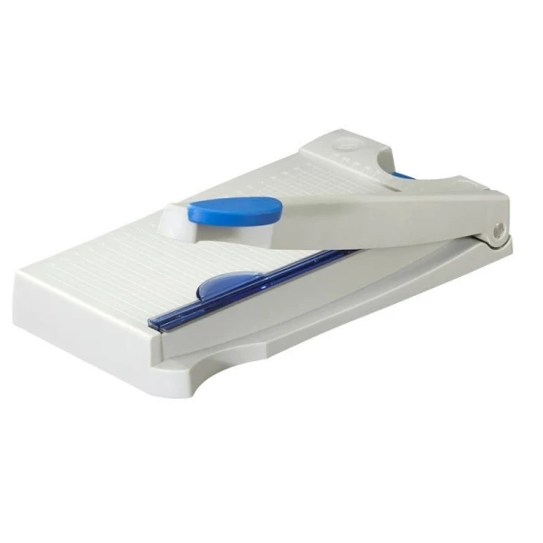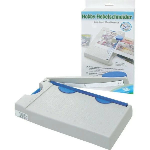 Description de Massicot guillotine de découpe format A4, Wedo, grille de mesure et levier ergonomique