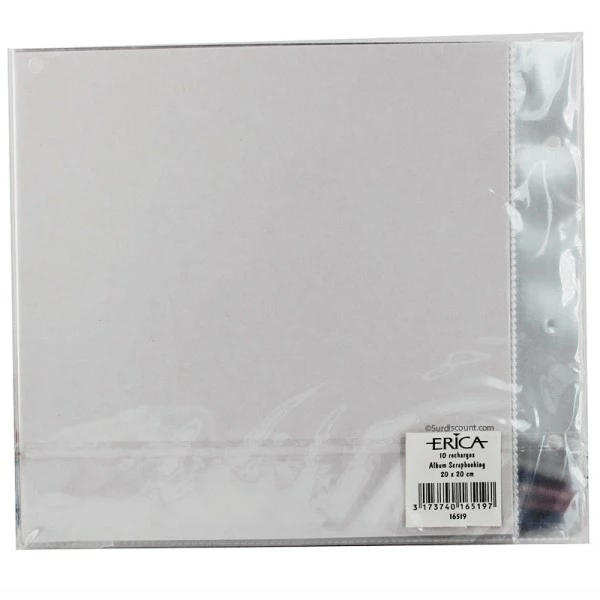 - Set de 10 recharges transparentes pour album 20×20 composées de 2 perforations.