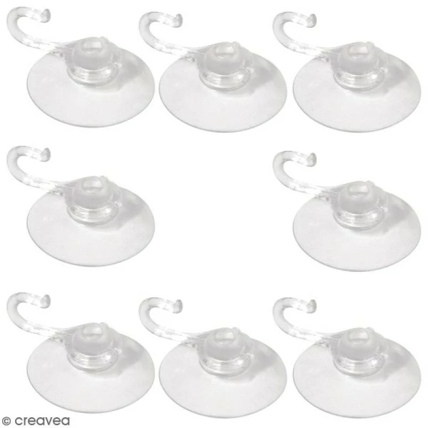 Ce sachet contient 8 ventouses avec crochets. Ces ventouses sont notamment très pratiques pour placer des guirlandes et suspendre différents objets sur n’importe quelle surface lisse. Elles sont dotées d’un crochet de 10 mm. Vous n’avez qu’à appuyer sur la ventouse pour la fixer sur une vitre, sur un mur non poreux, etc.
